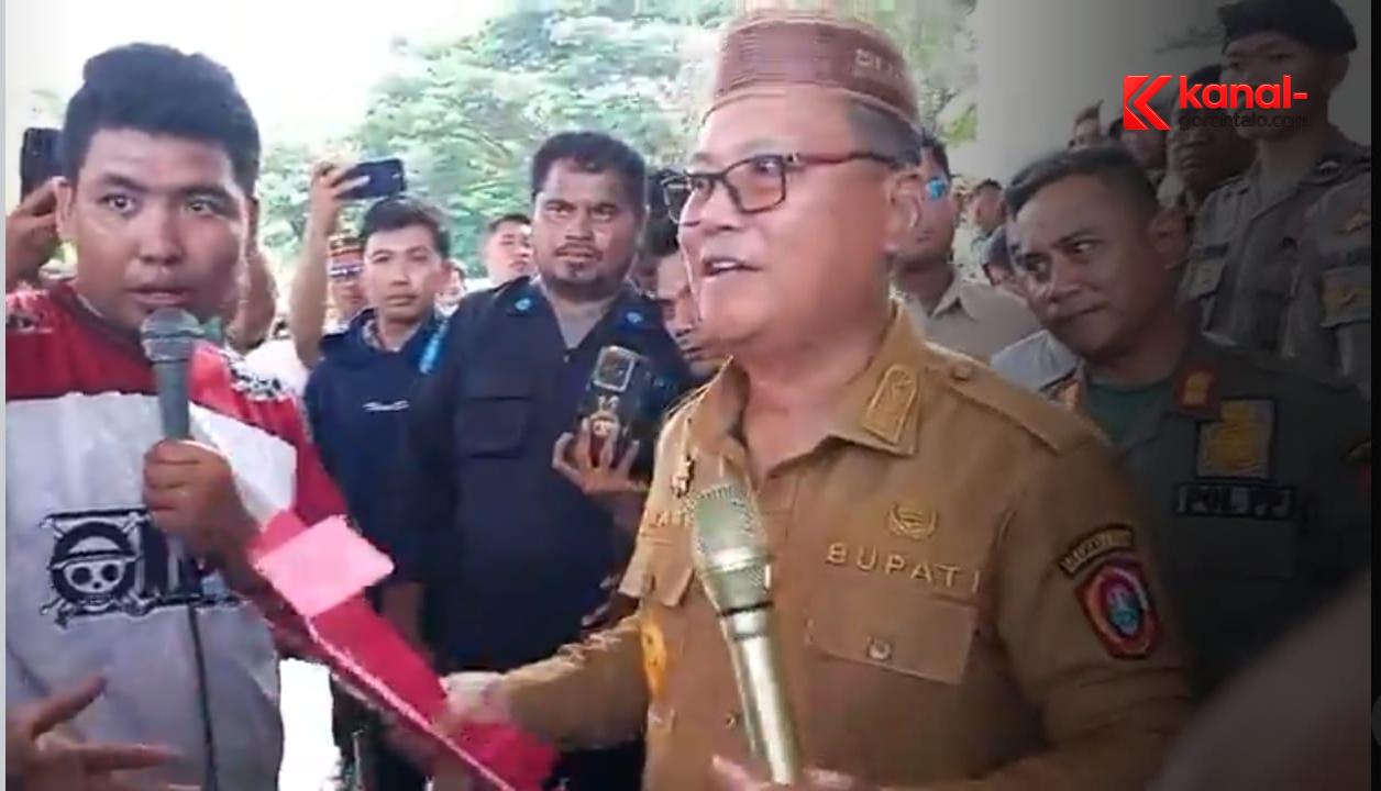 Suasana unjuk rasa memanas ketika Bupati Gorontalo Utara, Thariq Modanggu, turun langsung menemui massa. Dalam pernyataannya pada menit ke-58 saat dialog berlangsung, Thariq secara terbuka mengungkap bahwa kasus dugaan ijazah palsu tersebut telah ditangani oleh Polda Gorontalo.