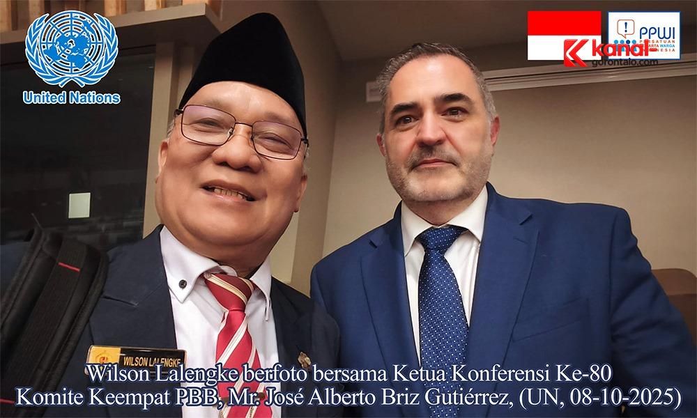 Kanal-Gorontalo.com, New York — Komite Keempat Perserikatan Bangsa-Bangsa (Fourth Committee of the United Nations) mengadakan konferensi ke-80 bertempat di Conference Room #4 Markas Besar PBB di New York City, Amerika Serikat, pada tanggal 08-10 Oktober 2025. Dalam sesi konferensi penting di Komite Keempat PBB yang diadakan pada hari pertama, Rabu (08 Oktober 2025), Mr. José Alberto Briz Gutiérrez, Ketua pertemuan ke-80, menyampaikan apresiasi yang tulus kepada Wilson Lalengke, delegasi petisioner dari Indonesia, atas kehadiran dan pidatonya di sesi tersebut yang berdampak dalam membahas pelanggaran hak asasi manusia di kamp-kamp pengungsi Tindouf dan wilayah lainnya.